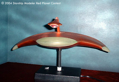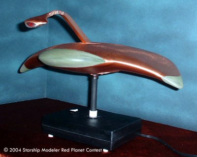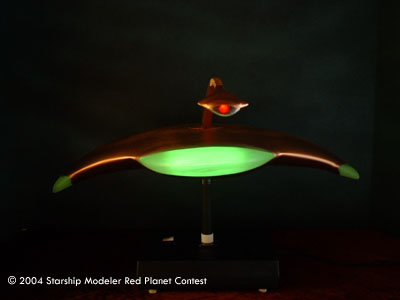 The kit is a Lunar Models vacuum formed version, and required 75 hours to complete. This model features a custom-made pulsation module to operate the lighting system. Lighting consists of 3 CCFL's to illuminate the 3 extremities and 3 green "spot" LEDS to add additional effects to the 3 lower "suspensor" lights. A red LED is mounted in the "cobra" weapon to add a sinister reminder of this awesome adversary. The power system is 12 volts (1250 mA), by AC driven power pack.