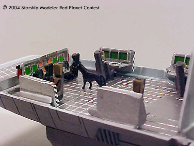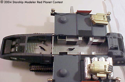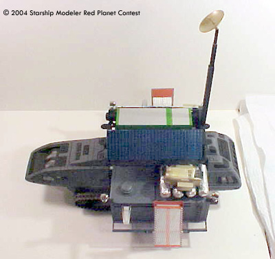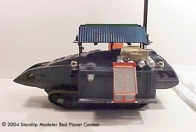 The Travois has the capabilities of exchanging Cargo Containers when traveling, allowing the crew to supply outposts or pick up supplies dropped from orbit. The Martian atmosphere is rough on the vehicle so paint matching in the repair area is well, like the South Pacific during WWII, they make do for colors and materials.