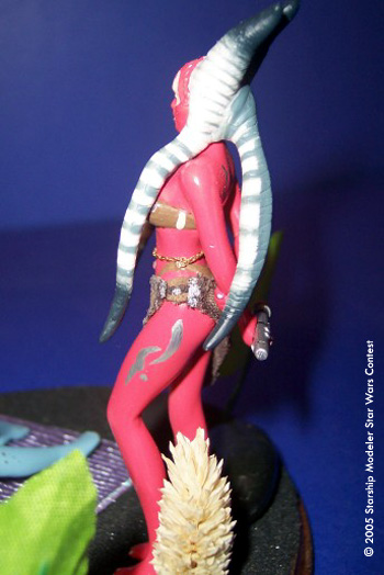 Being pleased with the results, I wanted to do another with the other anime figure so I chose the next best subject and used Aayla Secura. I went through the same process as I did with Shaak Ti. I used I piece of shock cord from a flying model rocket to make her top. I was to originally make her topless but I wanted to share my creations with the public, and I have kids.