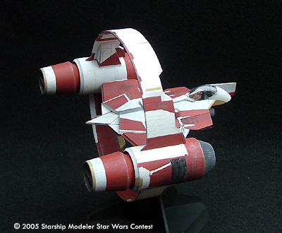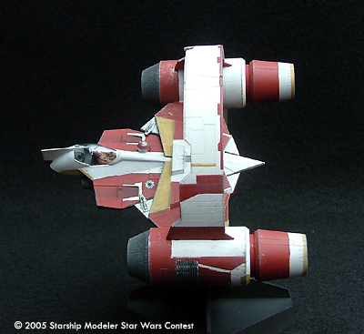 Then the contest came around and I thought I'd finally tackle the bizarre paint scheme. This led to much experimentation with masking the ship, but every one of my attempts led to tears. And cursing. Thus I decided to hand paint her. I'm still in counseling for this.