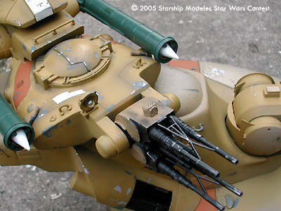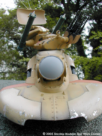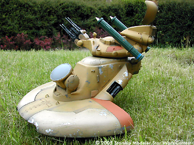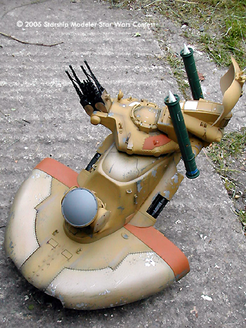 Developed by the Baktoid state factories and sold to the Trade Federation as part of the F Echelon Vehicles for deployment into hostile areas, the Anti Air Gun and Missile Tank (AAGMT): nickname LIGHTNING BOLT, was the primary weapon for Anti air cover from all types of hostile craft.