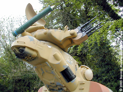 The four barrelled gun can be trained independently from the Missiles and can be used to engage ground targets.
