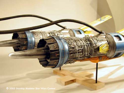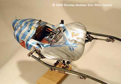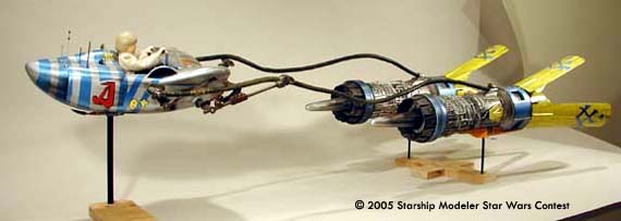 This is a 100 % scratch built model of Annakin's pod racer from Episode I. It was built 1:6 scale to accommodate the 1:6 Annakin action figure.The entire model measures over 6 feet in length.