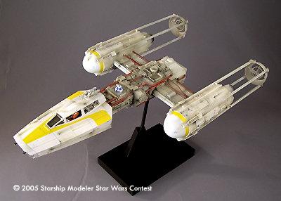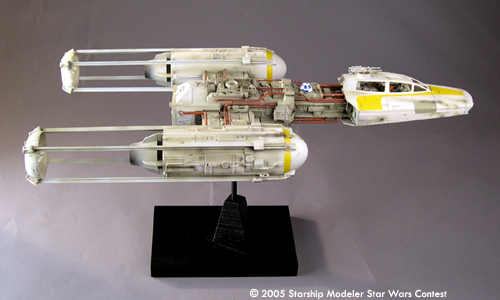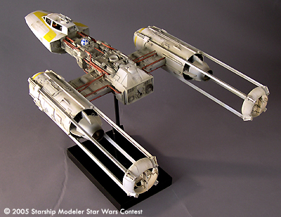 This model was constructed as a replica of the Y-wing miniatures used in the filming of the original Star Wars movie.