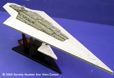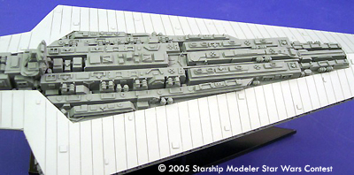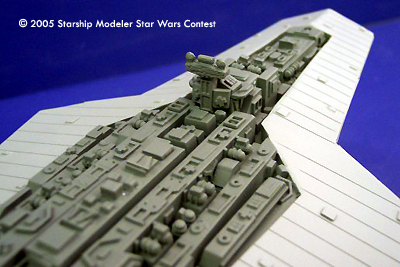 For the finer detail, I used any and everything I could find that was small enough. I went to a local shop that does laser cutting and was able to collect small, left over pieces from things they cut. It benefited me because I could use the parts. It benefited them because they got someone to clean out the bottom of thier laser cutter. The command bridge was cut from a micro machine Star destroyer. I molded the Star destroyer with the intentions of making a small fleet around the SSD. I decided to just go with one for size comparison. I did repaint the SD so it would be a little more correct from the medium grey that it was.