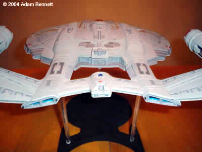 They went together rather well and the pins that slid together made putting the saucer sections together a real joy compared to the usual chore it is gluing saucer sections together. I also wasn’t able to find any titanium gold paint so I replaced this with copper. I like the color copper and feel it looks good in space and it goes well with the model as well. The decals went on rather smoothly. I really don’t like using decals. I would rather paint the details on the model, but since the model came with decals I used them. I like how this model came together at the end. I didn’t have any trouble with putting this model together and I can’t wait for the Polar Lights Enterprise A to come out. Image: Stern view Image: Starboard forward Image: Starboard aft Image: Saucer detail Image: AVST? |