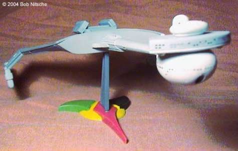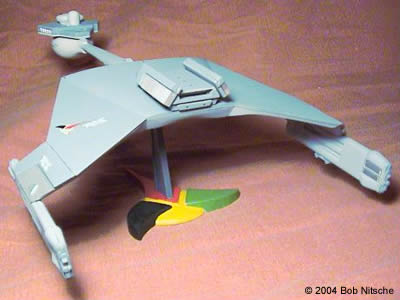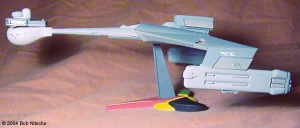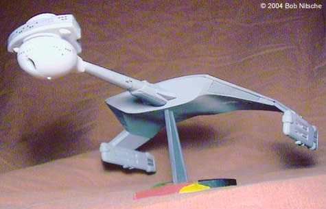 ![]() This is my buildup of the Polar Lights Klingon D-7 battlecruiser. This is a nicely detailed little kit (in as much as the D-7 doesn't have a lot of detail), though I ended up using glue in many places to try and fix the worst gaps of the snap-fit parts. The decal sheet is what we've come to expect from the 1/1000 scale TOS kits-abundant and sharp, with the possibility of many variants. I pretty much used the suggested paint scheme for the D-7, several different shades of light and dark gray. This kit was a lot of fun, and looks great on the shelf next to my Polar Lights TOS Enterprise. Image: Port side view Image: Bow on Image: Dorsal view from forward Image: Foward port quarter Image: Port aft quarter Image: Stern view Image: Dorsal from aft Image: Ventral view |
